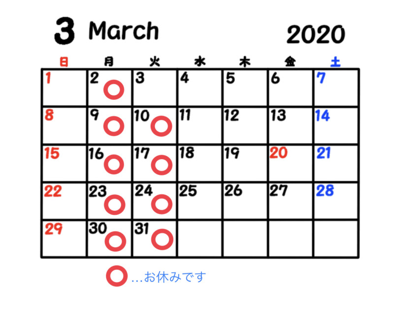 2020年3月のお休み