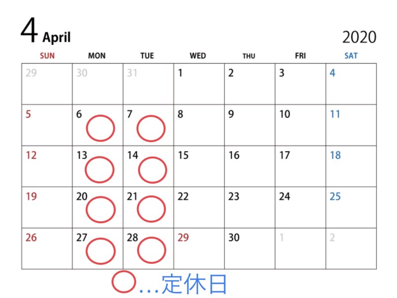 • 2020年 4月のお休み