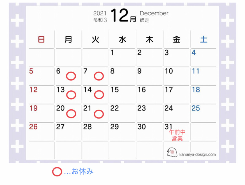 • 2021年 12月のお休み